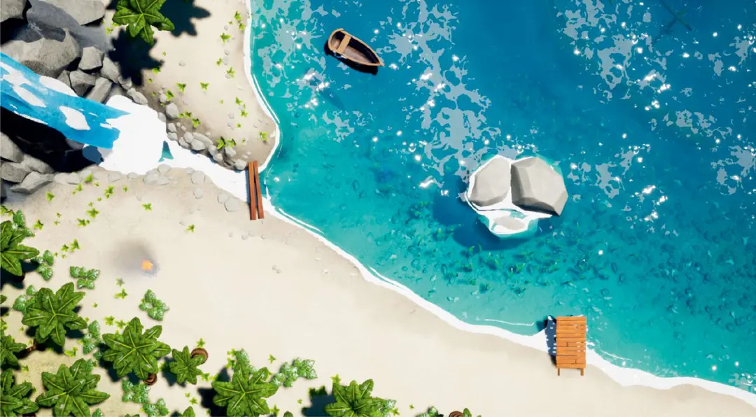 um ambiente de litoral de verão aparece no sandbox